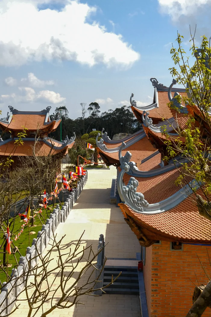 Không chỉ gây ấn tượng bởi vị trí và khí hậu, chùa Trúc Lâm Hòn Bà còn mang đậm dấu ấn kiến trúc gỗ truyền thống của Thiền phái Trúc Lâm Yên Tử. Giữa nền trời xanh, mây trắng và rừng già bạt ngàn, những công trình bằng gỗ hiện lên mộc mạc, trang nghiêm, hòa quyện hài hòa với thiên nhiên. Chính nét giản dị, cổ kính ấy đã góp phần tạo nên không gian thanh tịnh, khiến du khách dù chỉ ghé thăm trong chốc lát cũng dễ dàng cảm nhận được sự an yên, nhẹ nhõm trong tâm hồn.