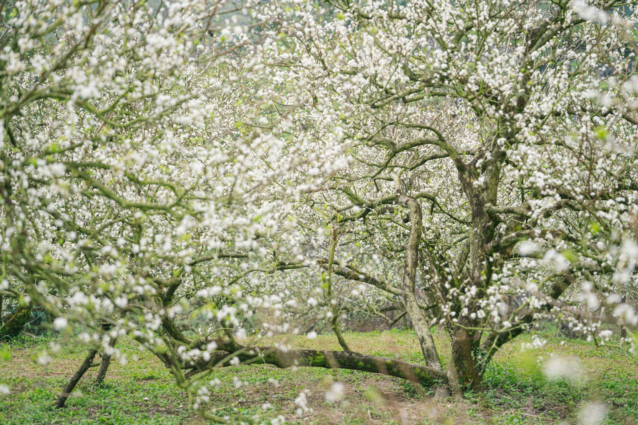 Không đợi đến sau Tết, không cần chờ mùa Xuân gõ cửa, những ngày cuối tháng 11, đầu tháng 12, cao nguyên Mộc Châu đã bất ngờ trắng xóa bởi hoa mận trái vụ. Giữa cái lạnh đặc trưng của miền núi, những thung lũng mận bỗng bừng sáng, tạo nên khung cảnh lạ lẫm mà mê hoặc, như thể mùa Xuân đến sớm hơn một nhịp.