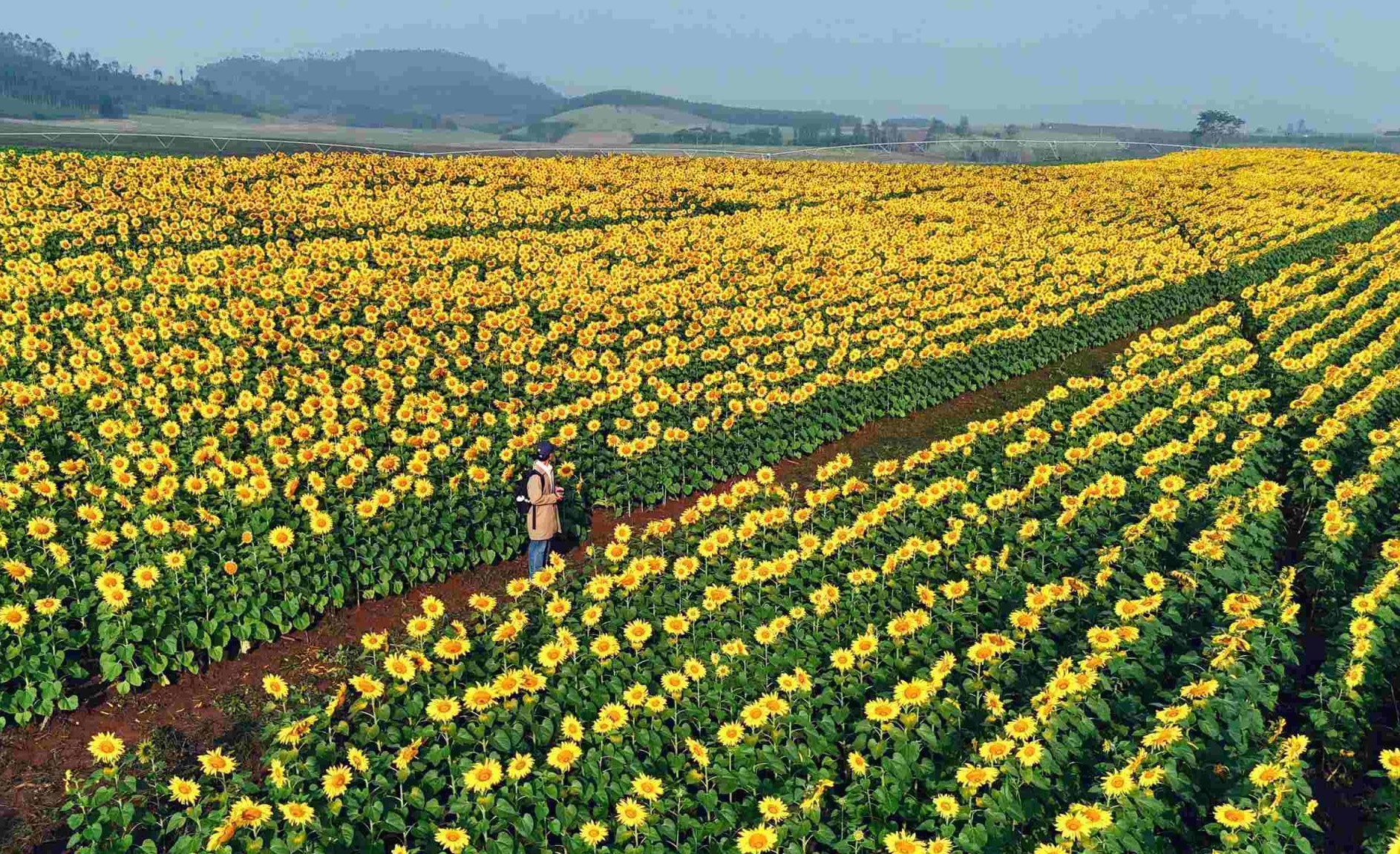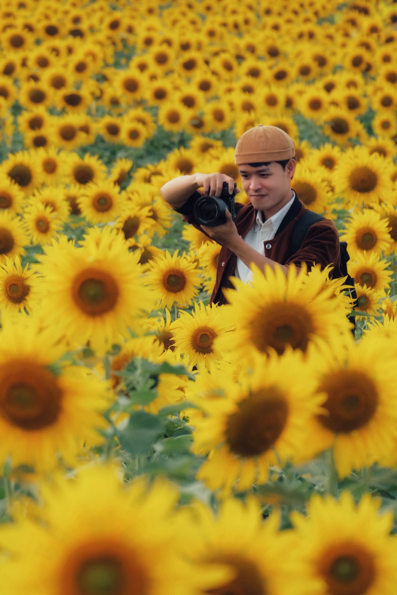 Tuyên Parafu, một blogger từ Hà Nội không chần chừ đã lên đường khám phá ngay khi biết tin cánh đồng hoa hướng dương Nghĩa Lâm mở cửa. Ảnh: Tuyên Parafu
